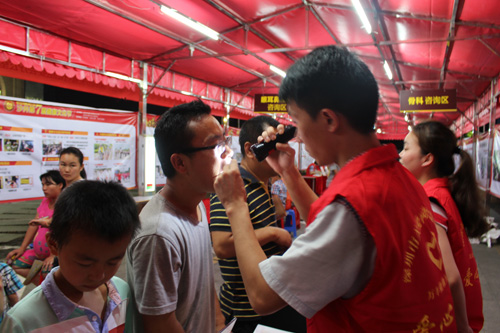口腔科医生为现场市民进行口腔健康检查