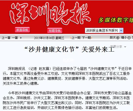 深圳晚报刊文赞誉深圳万丰医院关注外来工身心健康