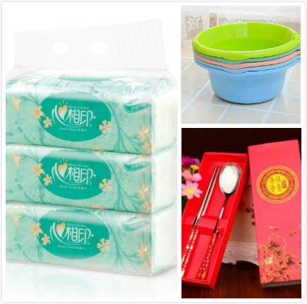 抽纸巾1提+洗脸盆+筷子礼盒