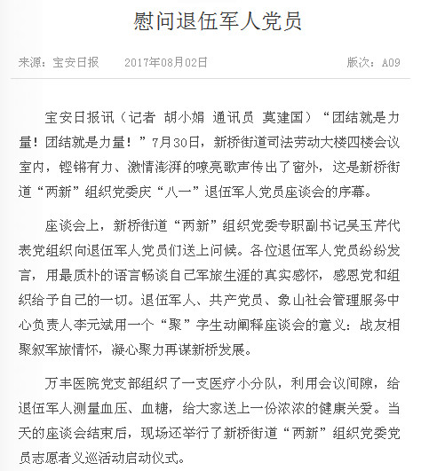 【宝安日报】万丰医院慰问退伍军人党员